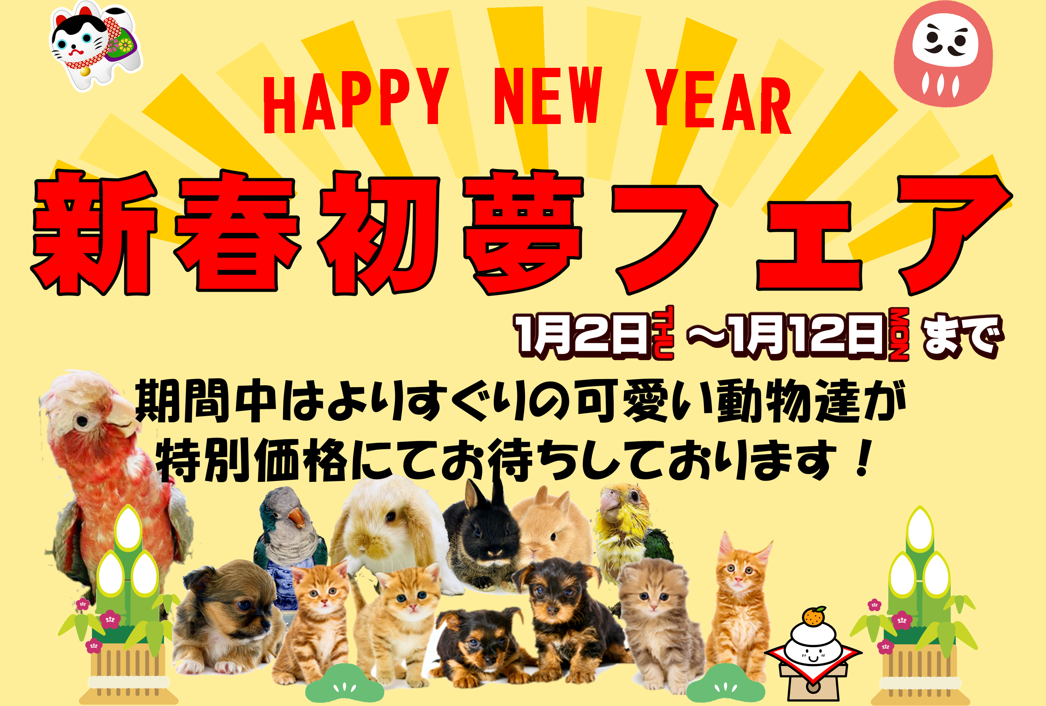 期間中は選りすぐりの可愛い動物達とお客様をお待ちしておりますのでお近くにお越しの際には是非お店までお越しくださいませ!